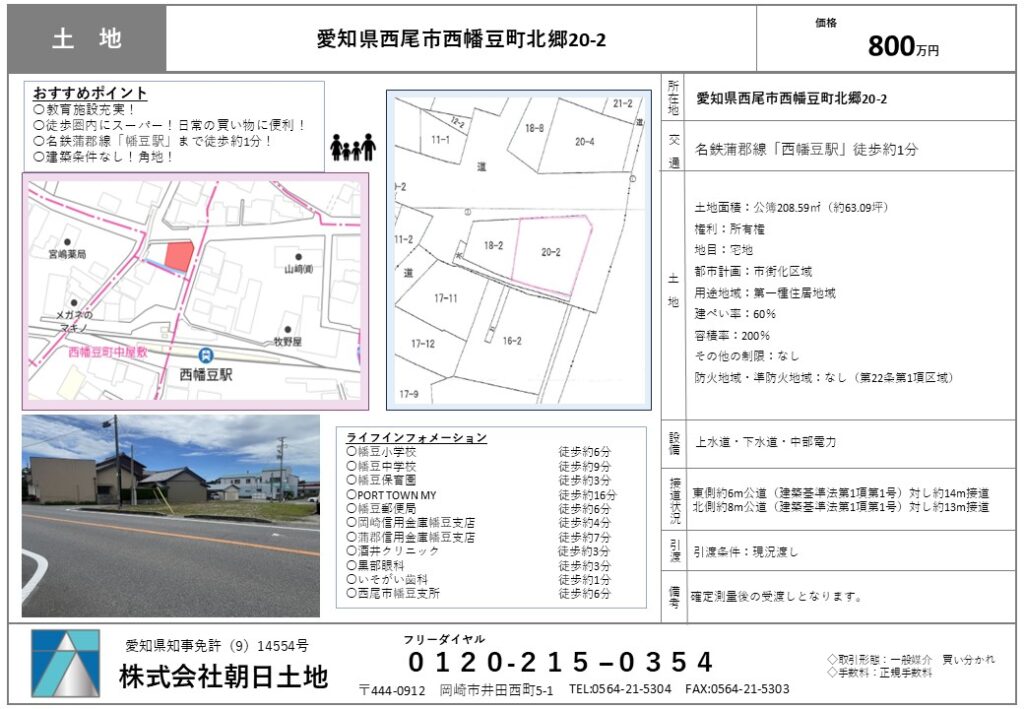 【売地】愛知県西尾市西幡豆町北郷20-2 800万円 2026.02.18 ≪おすすめポイント≫ ◆角地につき陽当たり・通風良好◆建築条件はありませんのでお好きなハウスメーカー・工務店で理想のマイホームが実現可能◆周辺にスーパーがあり日々の買い物にも便利◆名鉄蒲郡線「幡豆駅」まで徒歩1分の便利な立地 « NEWSの一覧へ